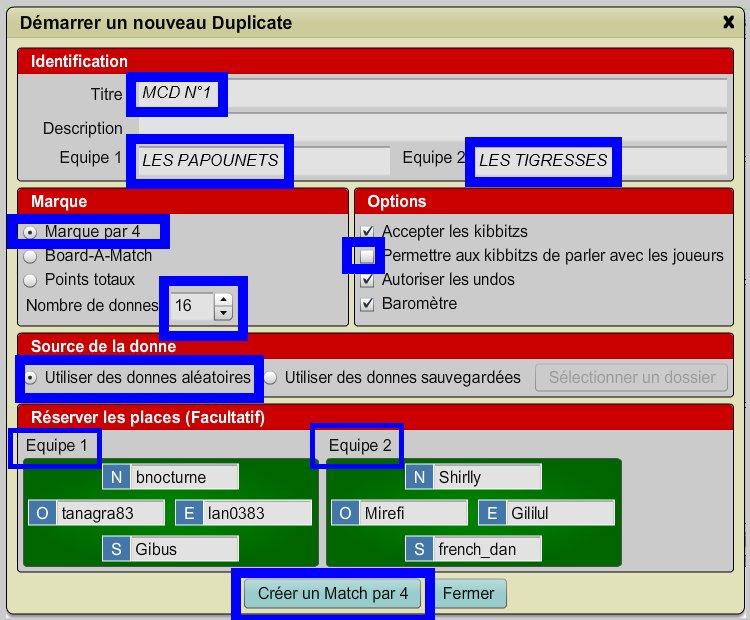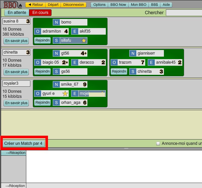 CREER UN MATCH PAR QUATRE (TEAM MATCH) PROGRAMME BBO :